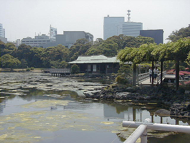 休憩所から「中島の御茶屋」を見たところです。 ここで「お抹茶セット」を楽しんだ人も多かったようです。