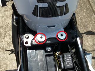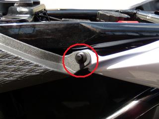 サイドカバーとシートカウルを固定しているクイックリベットを外してから、サイドカバーを外します。 |