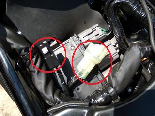 タンクを浮かした状態で、2つのコネクタ(燃料ポンプ、燃料レベルセンサ)を外します。 |