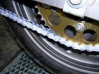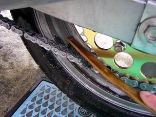 チェーンのコマとコマの間(リングがついているとこ)とスプロケットとかみ合う所を特に念入りにやります。 |