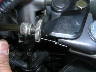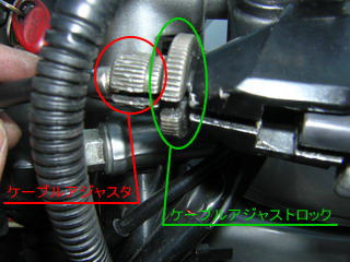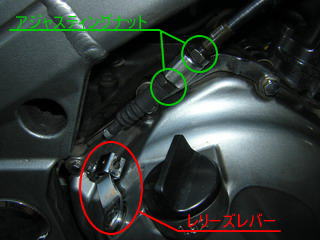 クラッチワイヤをレバーに取り付けた後、アジャスティングナットでクラッチが着列位置を調整します。