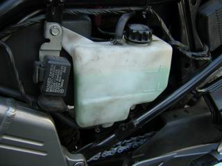 リザーバータンクはシートフレームに固定してあるボルトを外して、バットにあけました。
