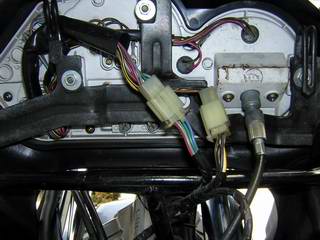 ヘッドライトのコネクタを外すとアッパーカウルが外せます。 |