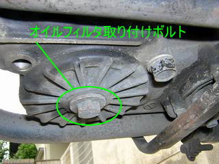 その後オイルフィルタ取り付けボルトを緩めます。 |