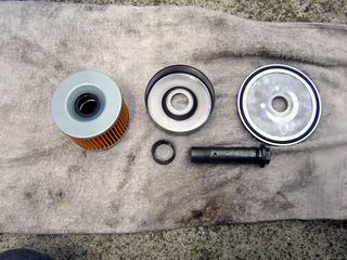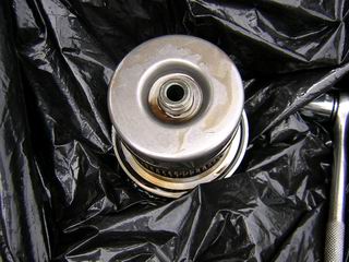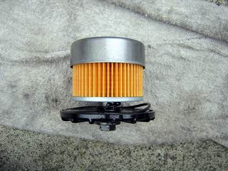 ある程度オイルが出きったら取り付けボルトを外してフィルタを取り出します。 |