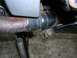 次にセンタースタンド辺りのエキパイとつなげているボルトを緩めます(外しはしません)