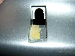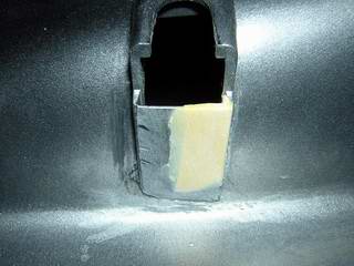 大穴が空いたままだと雨の時大変なことになりそうなのでパテで補修します。 |