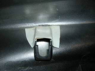 パンジーフック取り付けのステーが折れ、その荷重で割れてしまったシートカウル。