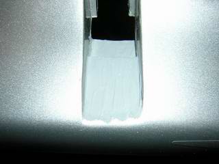 パテが硬化後240番ぐらいの耐水ペーパーでヤスリがけし表面を平らにします。 |
