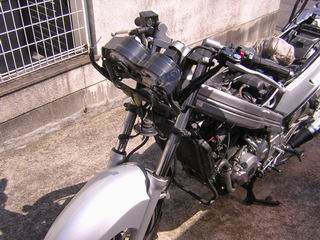 まずは、ZZRでのメンテでのお約束、タンク&カウル外しです。 |