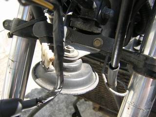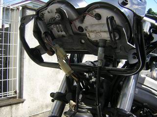 ハンドル、メータ等を取り付けた後ハンドルを左右にきってみてケーブル、ワイヤー類が干渉しないかチェックします。
