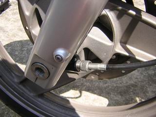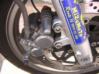 フェンダの内側からフロントフォークにボルトで固定されてます。 |