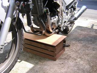 といっても、オイラは庭に転がっていたプランタを使って持ち上げました。 |