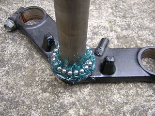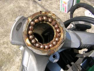 フォークアンダ側は20個、トップブリッジ側は19個のベアリング球を並べます。 |