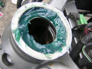 ステムヘッドボルトを外すと中からさびが出てきました。