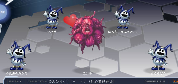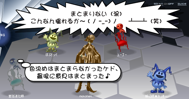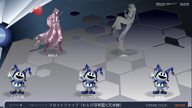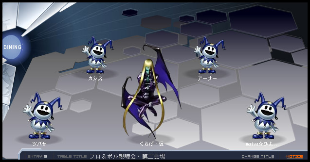 チャットに同席してました☆ すごいっすね〜!! チャットしながらこんなにすごい物を・・・ 次の機会があれば、是非とも頭ばたばたフロストを・・・(笑) |
