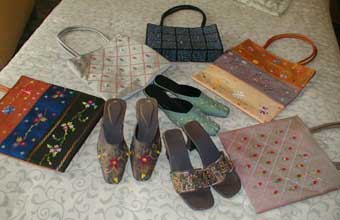 市場で買ったバッグやサンダル。これはほんの一部! ● |