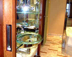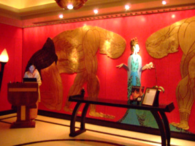 今回は2泊3日と短い旅なのでホテルはラグジュアリーに「Grand Hyatt Shanghai」。21世紀の近未来都市上海をアピールする88階の摩天楼タワーで、53階までがオフィス、54階以上がホテル。ロビーまで吹き抜けのアトリウムが圧巻。部屋はオリエンタルテイストにクールモダンなユーティリティーで、優雅な大人のインテリア。外の喧噪が嘘のように静まり、床から天井までガラス貼りの窓からは、ベッドに寝ころんでも上海の景色が眼下に一望できます。これはゴージャス。 |