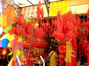 「新天地」は前回、通いつめた(笑)「上海の代官山」ともいわれる区画整理された観光地区。ブティック、カフェ、茶館、レストランが集まって、海外からの観光客ばかりでなく、国内からの旅行者も多く、若い人たちの憧れの場所とのこと。オリジナル小物やファッショングッズのブティック「アナベル・リー」は、値段は高いけど、絹製品、アクセサリー、バッグなど、デザインもよくて、東京ブランドにも負けない。今回、うぐいす色のリバーシブルのマフラーを購入。表が無地のウール、裏がストライプのチャイナシルクで使い勝手もいい。繊細な透かし彫刻を施した翡翠のチャームも注目です。 「百草伝奇」は薬膳、漢方、ハーブなどのヘルシーダイニング&カフェ。女性誌などで紹介されているので、日本人観光客も多いのでしょうね。日本語のメニューもありました。 |