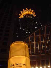 シンガポールの実業家がオーナーというおしゃれなレストラン。インテリアも料理もハイセンス。ワインはめちゃめちゃ高かったけど。 ● 避風唐(ビーフォンタン) ランチにぴったり。エスニックムード満点の香港点心、飲茶カフェ。何を頼んでも安心の味と価格。市内にいくつか支店がある。 ● ウェスティンホテル 前回泊まったホテル。外灘地区のランドマーク。どこから見てもすぐわかるパイナップル王冠がライトアップされるウエスティン上海。こちらも5つ星、快適度最高のシティ派ホテル。観光に便利な地区にあるので、きわめて便利。 |
