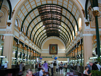 中央郵便局-正面はホーチミンの肖像画