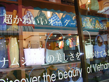 日本語がかかれたショーウインドー