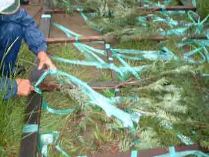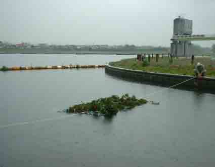 産卵は1尾の雌に2〜3尾の雄が追いかける様にして産卵を行う。 (この状態をハタキとか追い回しとか言うことがある) そして、流れの緩い水草のあるトロ場、葦など水没した陸生植物の茎や根などに卵を産み付けられる。 1産卵期に2〜3回卵を生み、その数は20−60万粒と言われる。 卵は直径2mmで粘着性があり水草などに付着する。20℃では4,5日でふ化する。 ふ化した仔魚は、約5mmで水草の生えた止水や水田でミジンコなどのプランクトン等を食べ大きくなる。 昔は水田での産卵が多くみられたらしいが、近年では水没した植物に卵を産み付けることが多く、ふ化する前に水位が下がりふ化の前に卵が死んでしまうことが多い。 以上の様な産卵条件を、人工的改善するため産卵床を作り鯉の産卵を促し、増殖につとめる事が、この産卵床設置の目的である。 |