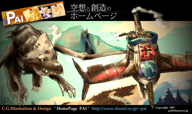 PAI 精密なラインと、丁寧な着色でファンタジックな情景を表現してます。創作についてのエッセイやストーリーを持たせたイラストなど、いろいろな試みをしているようです。たくさんの作品の中から1枚だけ広告用イラストをお借りしました。 |