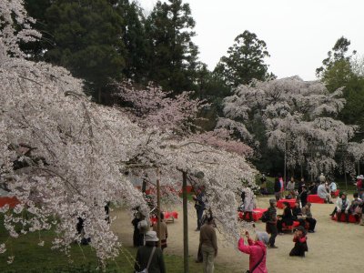 ですがコンビニ(京都駅)で買ってきたおにぎりを頂きつつ(*^¬^*)お花見です。--->