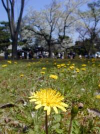枝垂れ桜の次に椿が咲いていました。まだ・・開花していない(=´ー`)>ヾ 桜の園≠ナ たんぽぽ満開を見ながらベンチに座っておにぎりを頂きました@12:00PM...。(*^¬^*)