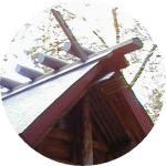 【寄棟造り】(よせむねづくり) 屋根の形式で、大棟の両端に隅棟が集まり、四つの面から構成されるもの。