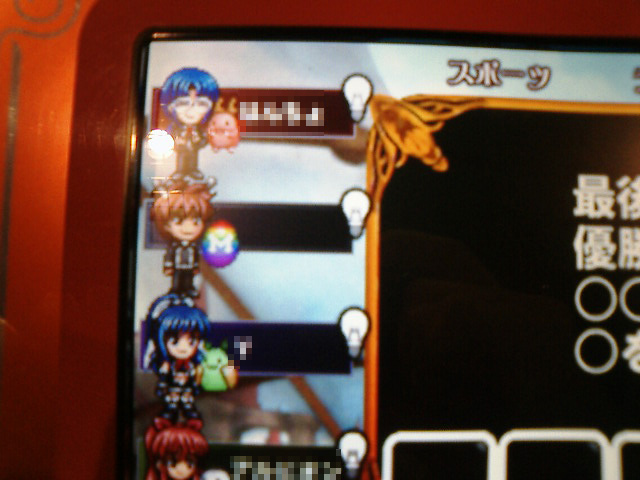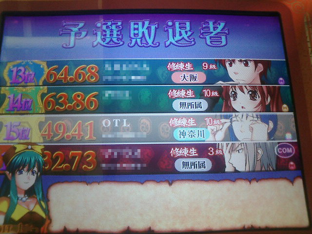 なんてこったいorz 久々に優勝シーン撮影をすべく新キャラ投入。名前のせいか、1回目のプレーで初戦敗退……。 |