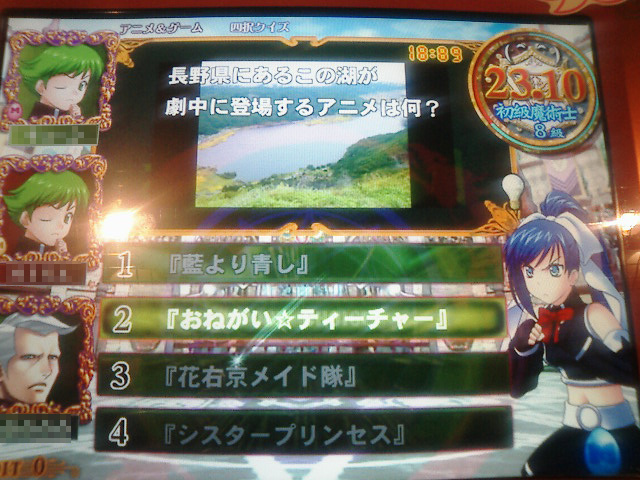 アニメ&ゲーム四択 長野県って書いてなかったら間違えてたかも……。 |