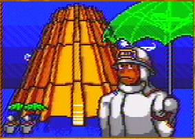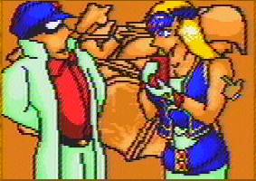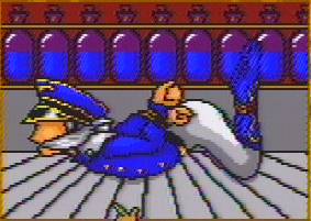 ところが、ここではナゾの生命体、ピラウト ラに対抗する薬はつくっていないそうである。 まあ、ナゾの生命体というからには、かんた んにその対抗薬が手にはいるとはおもってい なかったが、ここでつくってるのはうちみ、 ねんざによくきく飲み薬だけだそうである。 そいじゃこまるから、なんとかしてナゾの生 命体に対抗する薬をつくってくれといったら、 「アイヤー、それならとなりむらのハオ先生 が、薬なんでもとくいアルヨ」と、おしえて くれた。東洋の人はみんなしんせつである。 さあ、こまかいところははぶくがハオ先生の 家までやって来た。とにかく薬をつくっても らおうと、先生をよぶ。でもへんじがない。 もういちど、よぶ。やっぱりへんじがない。 どうしよう。いないのだろうか。 だったら帰りをまつだけだ。せんたくがほし てあるからそんなにとおくへは、いってない だろう。 しかし、そのころハオ先生の家ではしばられ た学生がたすけをもとめて、はっていたので あった。