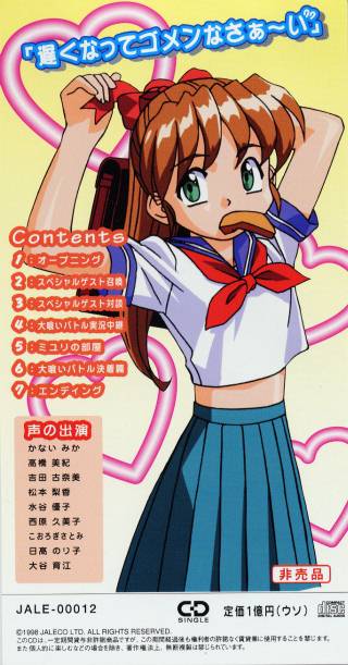 7:エンディング、ゲームの感想のお便りなど。リエさんとエリカさんがスーチーアドベンチャーに出演しないことへの文句が多数(限定版の方にはちゃんと出てたけど)。でも確かにリエお姉さまは男には絶対なびかないけど。ってルミさんの病院でアソコを切ってもらってって…。あと、リリムとデートしたかったって意見。確かに。で、リリムの乱入。リリムへのおハガキをもらっていきました。意外と可愛いところがあるんですね、ってカモにする気ですか。