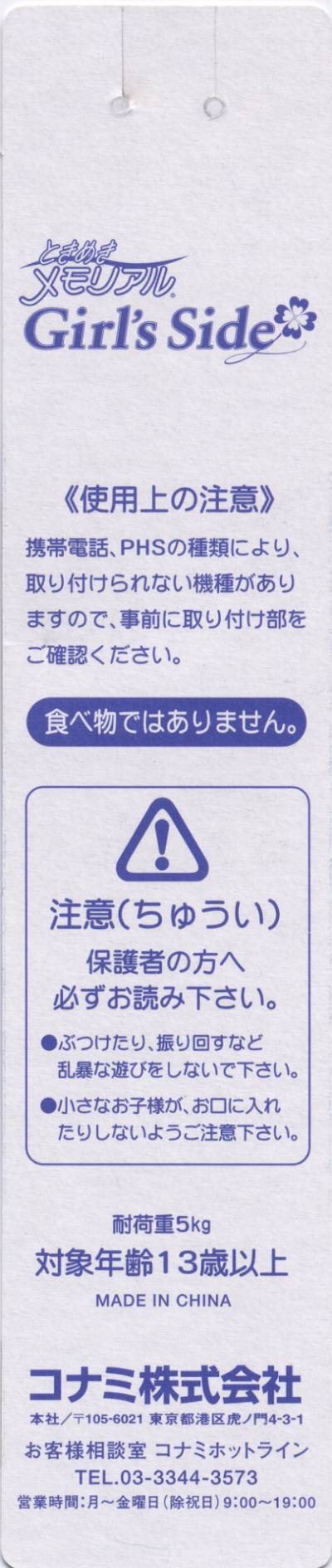 携帯ストラップの台紙の表(127KB) 裏(95KB)
