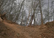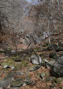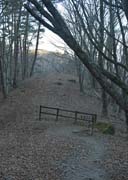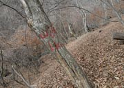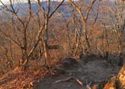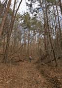 | 女岩への落ち葉で埋まった滑りやすい路を降りたくはないので、右手の尾根路コースに入ります。 5分ほどで千本桜への分岐を右手に分けた後は、急坂を勢いで降ると、しばらくで傾斜も緩んで歩きやすい路に変わりました。 尾根を分け左下に降って、少しだけ林道を進むと、昨日歩いた路に合流し、深田記念公園に到着します。 あとは柳平のバス停までの車道歩きが残っています。 バス停を見つけられずに歩き進んでしまい、結局自然公園入口まで歩いてしまいました。 | |||