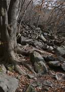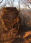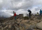 | 柳平でバスを降りて、車道を登山口へ向かいます。深田記念公園で身支度を整えて出発。 穏やかな樹間の路をたどり、林道の分岐を越えると、少し傾斜がきつくなりますが、しばらくで女岩に到着しました。 今はロープが張られていて近づけないのですね。 路は右手の急坂へ。落ち葉で膝まで埋まる路をたどり、滑りやすそうな急登をこなすと稜線上のコルに到着です。 尾根路を左手にたどり、露岩を乗越したりして、高みへと進むと、茅ヶ岳の山頂に着きました。 富士山から鳳凰三山、右手には八ヶ岳、と大展望が広がっているのですが、雲が邪魔しています。 風もあり寒いので、早々にテントに潜り込みました。 | |||