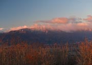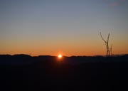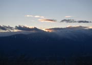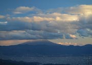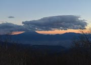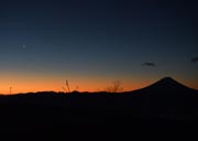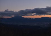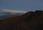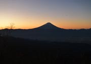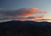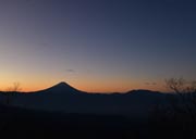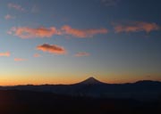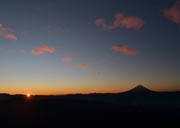 | 明くる朝、空は快晴、富士山の展望が広がっています。 黒一色だけだった展望がだんだんと明るくなってゆく様をずーっと眺めていました。やがて御迎光。 朝焼けとまでも言えないけれど、金峰山方向に残っていた雲が少しだけ茜になりました。 また、正面の鳳凰三山・早川尾根も少し残った雲が色づいてくれました。 | |||