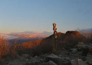 | 展望の茅ヶ岳。独立峰のような感じで、付近に高い山がないので、大展望が得られます。 富士山、鳳凰三山、八ヶ岳、奥秩父、・・・。 槍穂も見えるハズでしたが、思ったより雲が多くて、隠れてしまっていたのが残念でした。 それでも、翌朝の富士山の展望は素晴らしいものでしたし、金峰山を初めとする奥秩父の展望にも満足することができました。 | |||