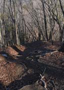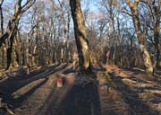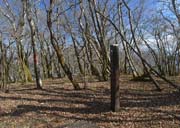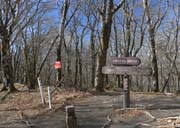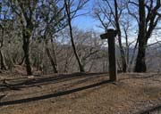 後はなだらかな路で三国山に着きました。が、疎林とはいえ樹林に囲まれて、富士の展望どころではありません。