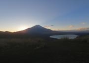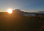 山頂では、山中湖を側に従えた富士山がドッシリと広がっていました。 午前零時、新年と同時に花火が打ち上げられました。 |