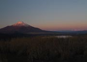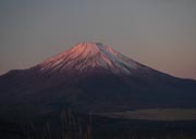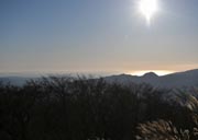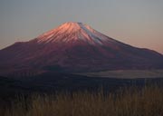| 急遽コースに組み込んだ明神山でしたが、パノラマ台から登ってくる人も多い、絶景の富士展望の山でした。 富士山に近づきすぎて、構図を決めるのに困る位です。 初日の出は快晴でしたので、期待した朝焼け、はなかったものの、ほんのりと紅色が乗っかっているのが判ります。 三国山ハイキングコースはまばらとはいえ樹林の中の路、三国山〜不老山もほぼ樹間の路なので、展望に乏しいのですが、 明神山の展望はそれを補って余るものと思います。 パノラマ台や三国峠から30分ほどの距離なので、陽の出の山頂には強風の中二三十人ほどの人達が集まっていました。 本当に富士山を眺めるのはいいものです。 | |||