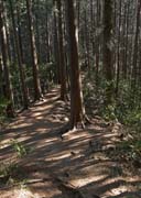 | 天覚山は頂上を踏んだだけで引き返して、今回は北へ尾根伝いに降ります。 何度かの急降下をこなし、やがて路が右に回り込むと林道に飛び出しました。 東吾野駅まではもう少しです、フゥ〜〜・・。 | |||