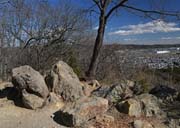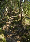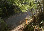 | 道標で秋川丘陵の山路に入り、山腹から尾根へ緩やかに歩いた後、急な丸太階段を登ると小広い網代城山の山頂に到着します。 朝歩いてきた横沢入の尾根が左手に見えていました。 山頂からは東側へ。急降下の丸太階段を経て、巻道から急な路をこなすと、網代弁天山です。 露岩のある狭い山頂を後に、右前に進み岩の間を通り、弁天洞窟を過ぎます。 貴志鴨神社から北へ進み、尾根路を下れば網代の集落です。 ここからは車道歩き。山田大橋で秋川を渡れば、武藏増戸駅ももうすぐです。 | |||