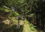 | 鷹ノ巣避難小屋に着いたのはもう13:40。ともかくも遅めの中食が終わったのが14:10。 予定している榧ノ木尾根を降るとすると4時間以上残っていて、6時を過ぎるのかも・・。 それでは体力的にも厳しいし、空は薄曇りで展望も期待できないので、鷹ノ巣山を巻いて、石尾根縦走路に回ることに決定。 これで30分位の短縮になります。 気持ち急ぎながら、石尾根縦走路分岐、水根林道分岐、と通り過ぎて榧ノ木尾根へ。 どこが頂上かわからない榧ノ木山をやり過ごした後、急坂となってドンドンと標高を下げていって、ようやくで倉戸山に到着しました。 それでも倉戸口バス停までは、まだたっぷり一時間が残っています。 | |||